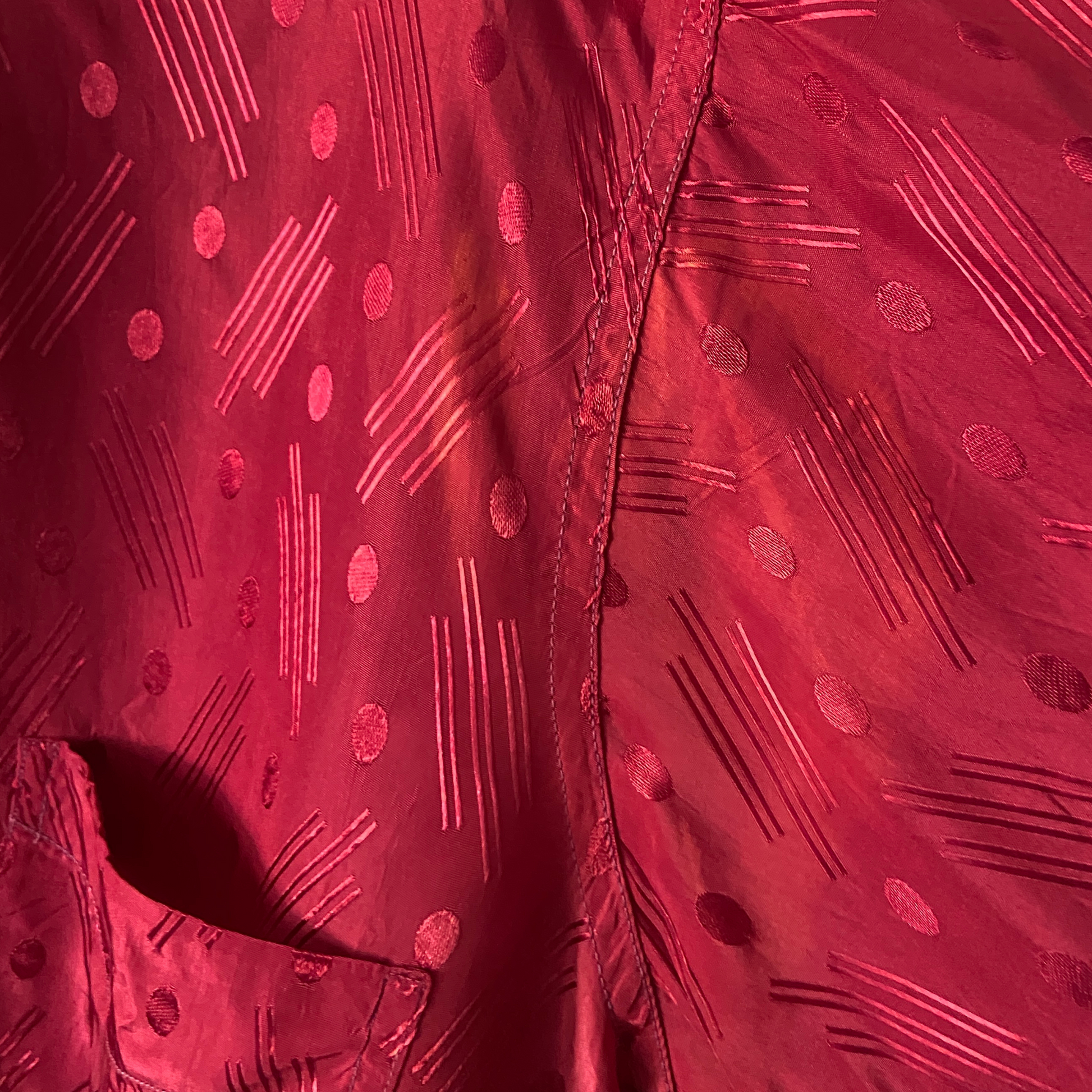 Condition: A few pinholes, discoloration to armpit. Overall presents well!