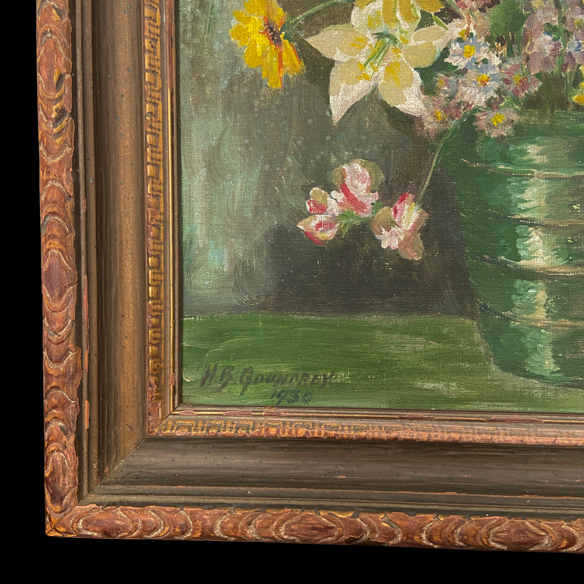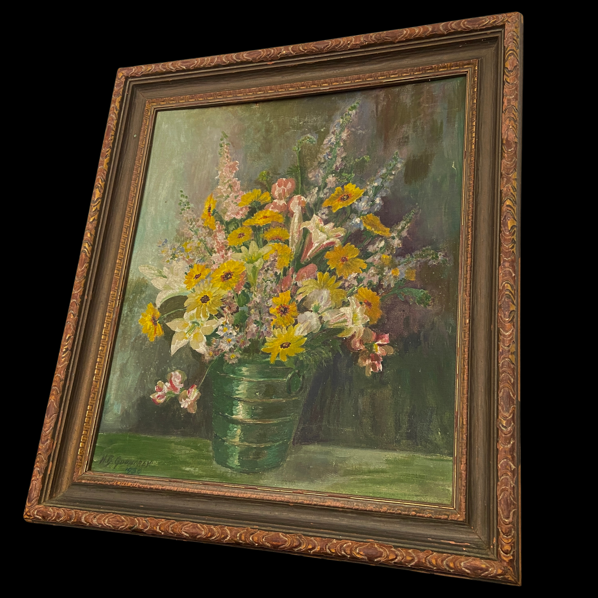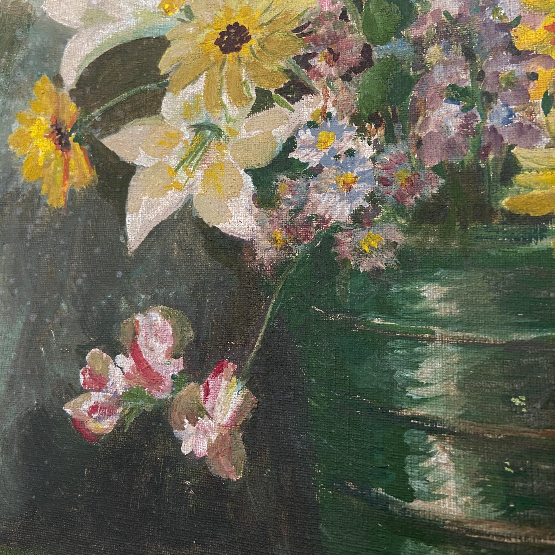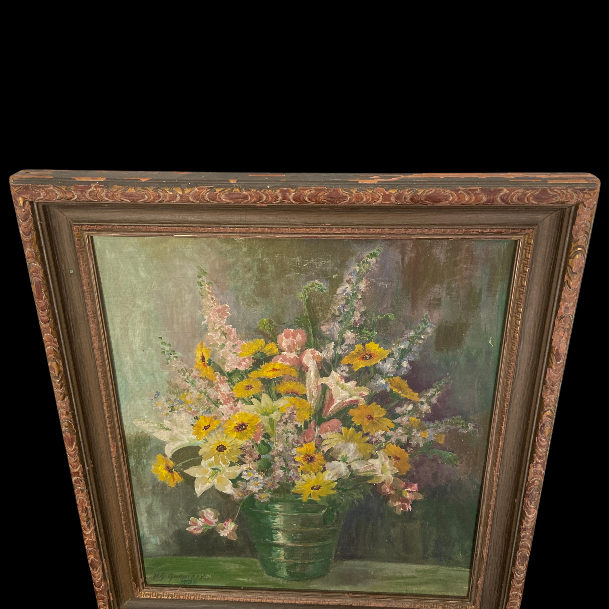 1930s Floral Still Life Painting in Original Chippy Paint Frame