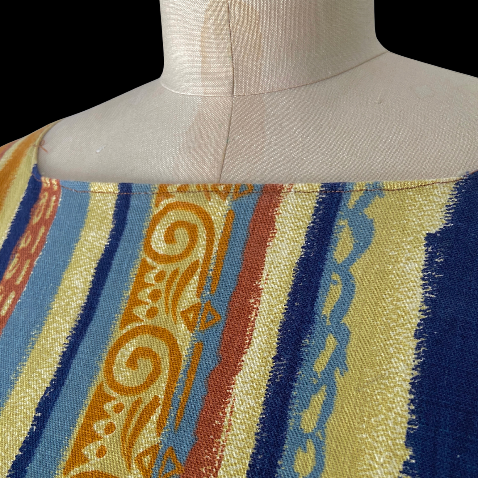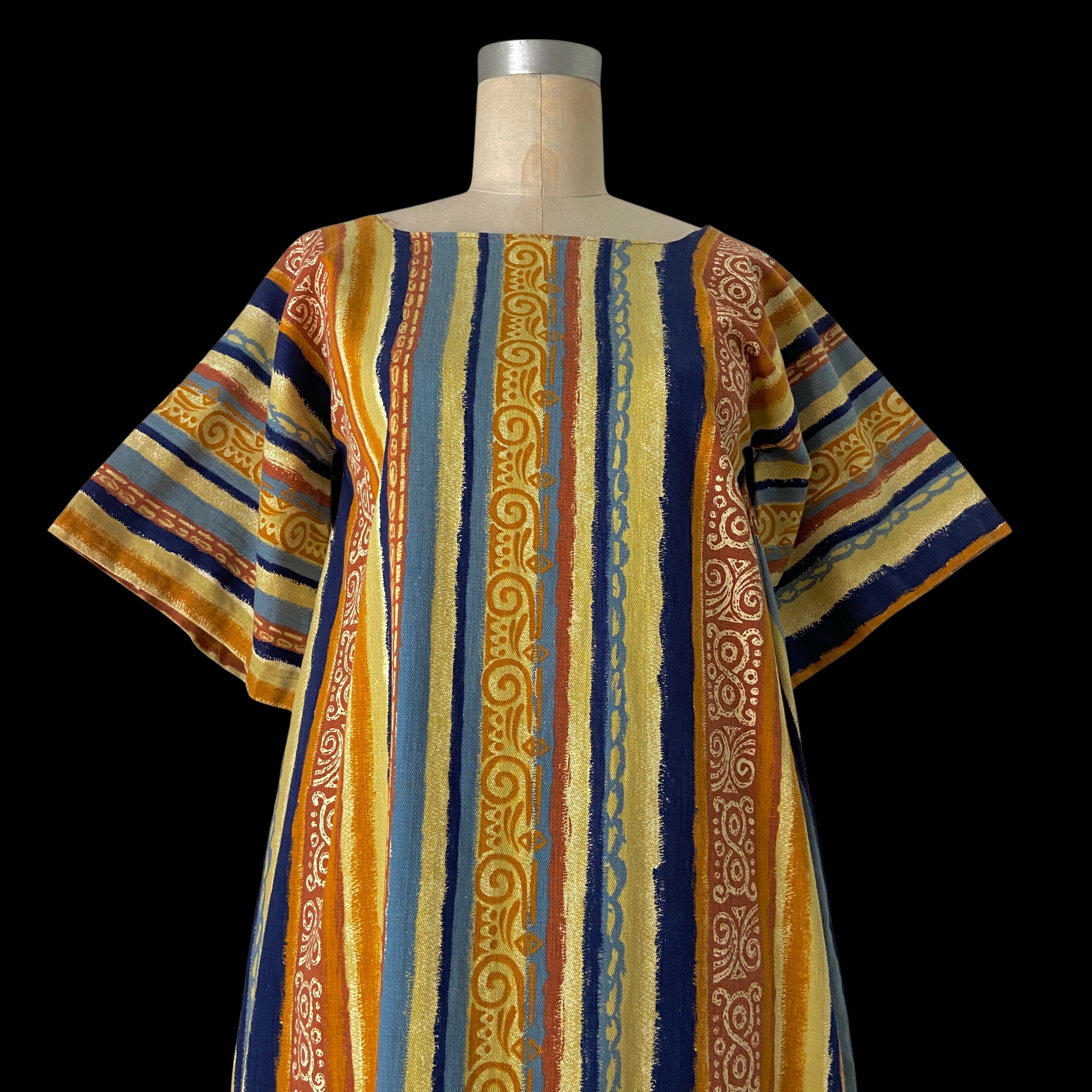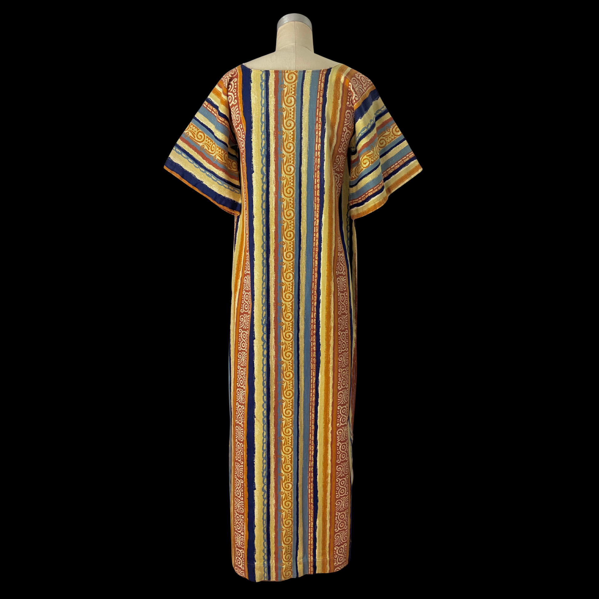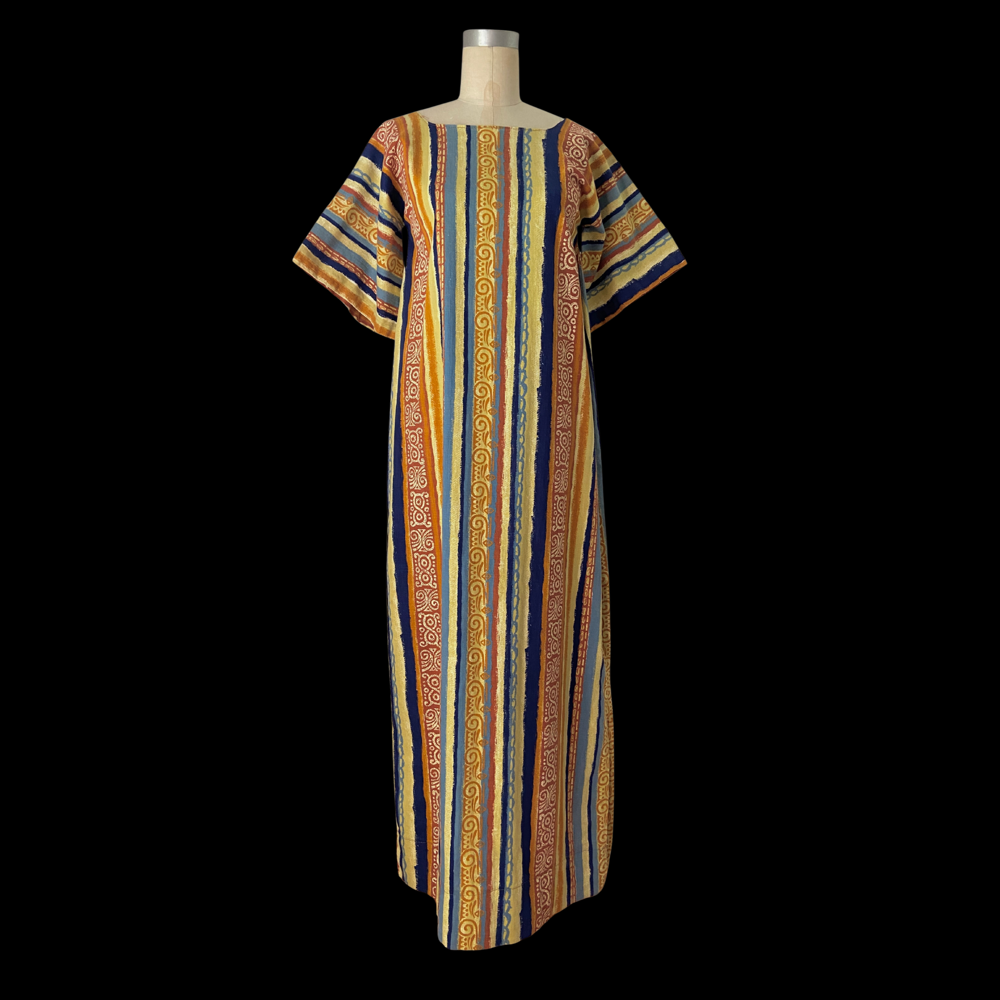 1960s 1970s Striped Cotton Maxi Dress Angel Sleeves