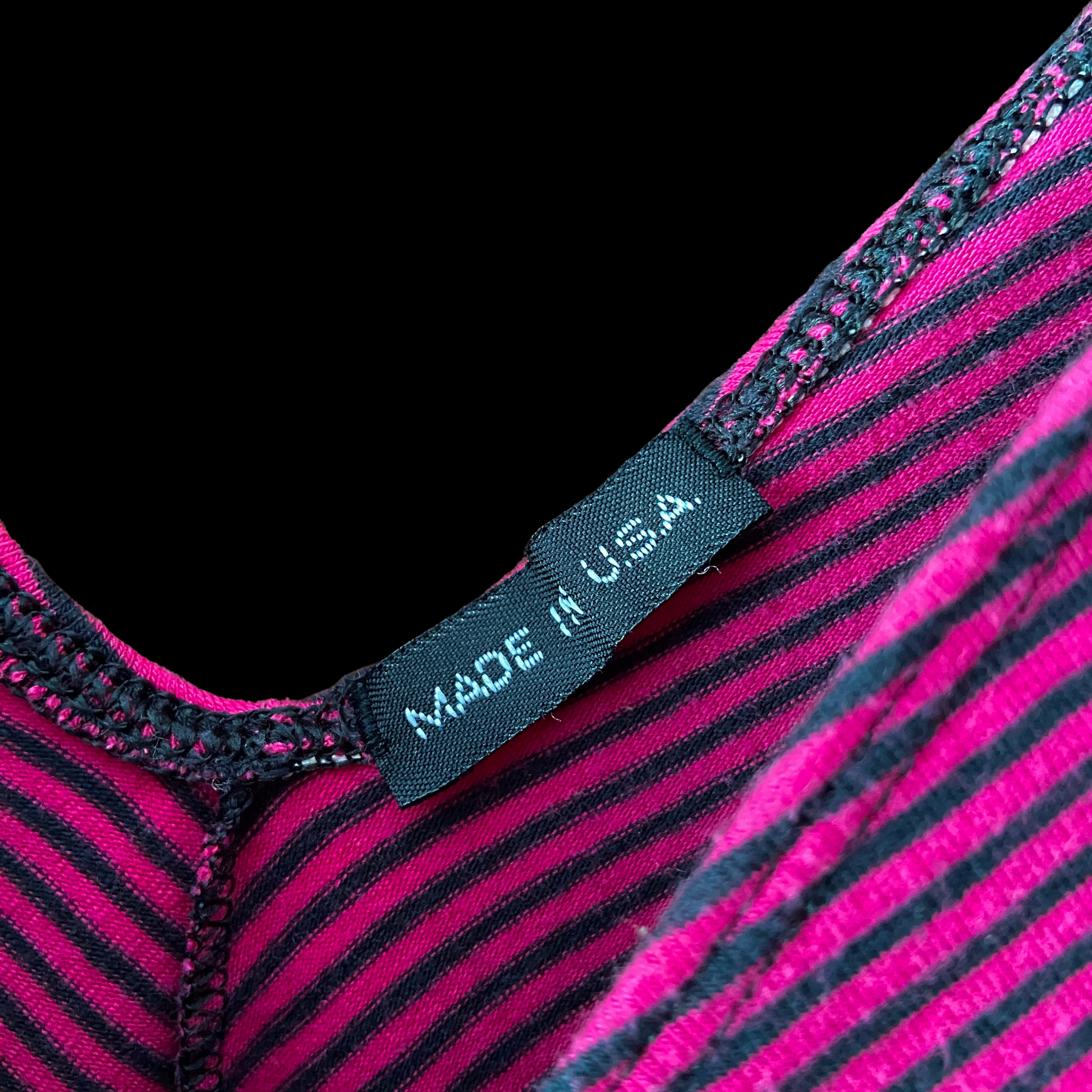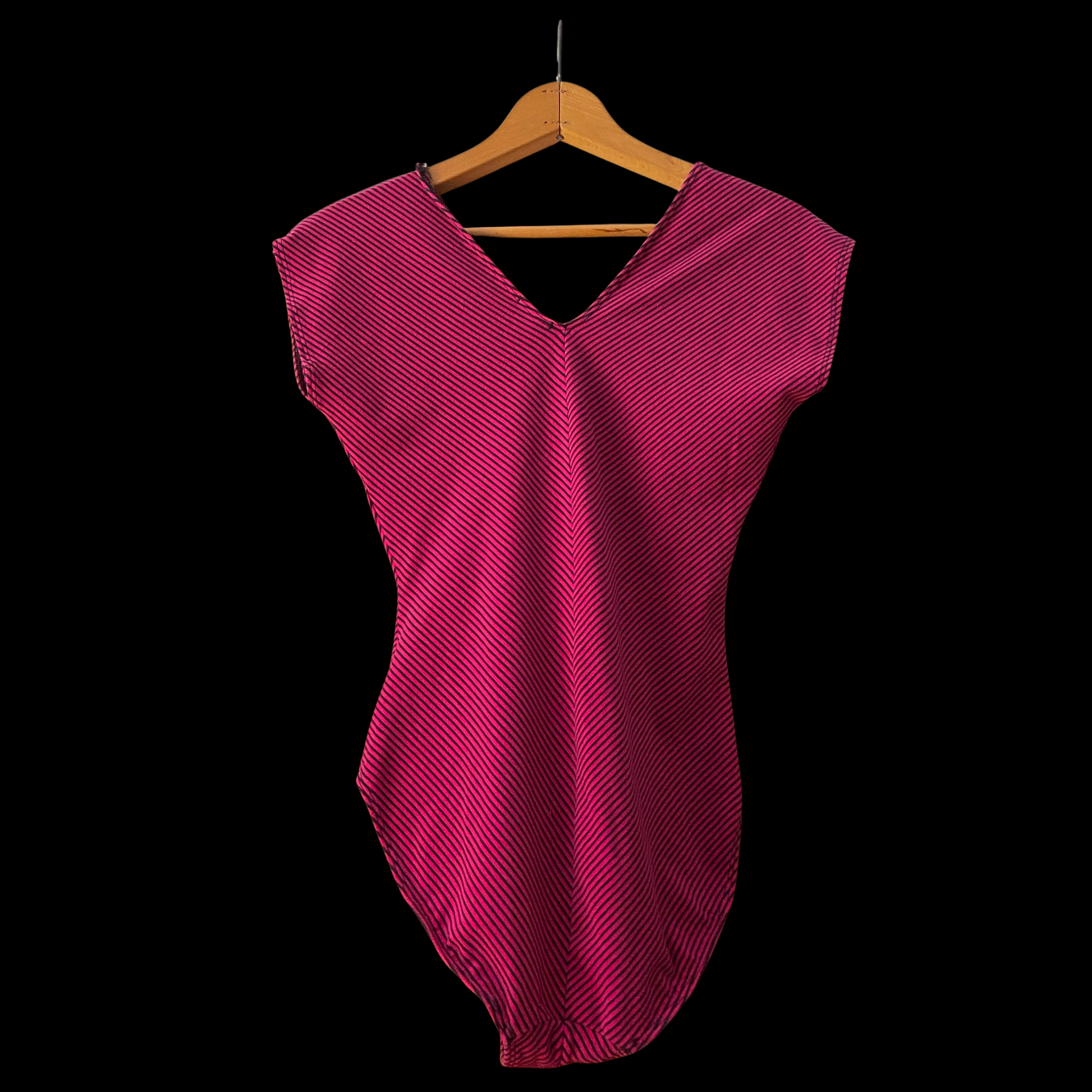 1980s Pink and Black Striped Cotton Bodysuit