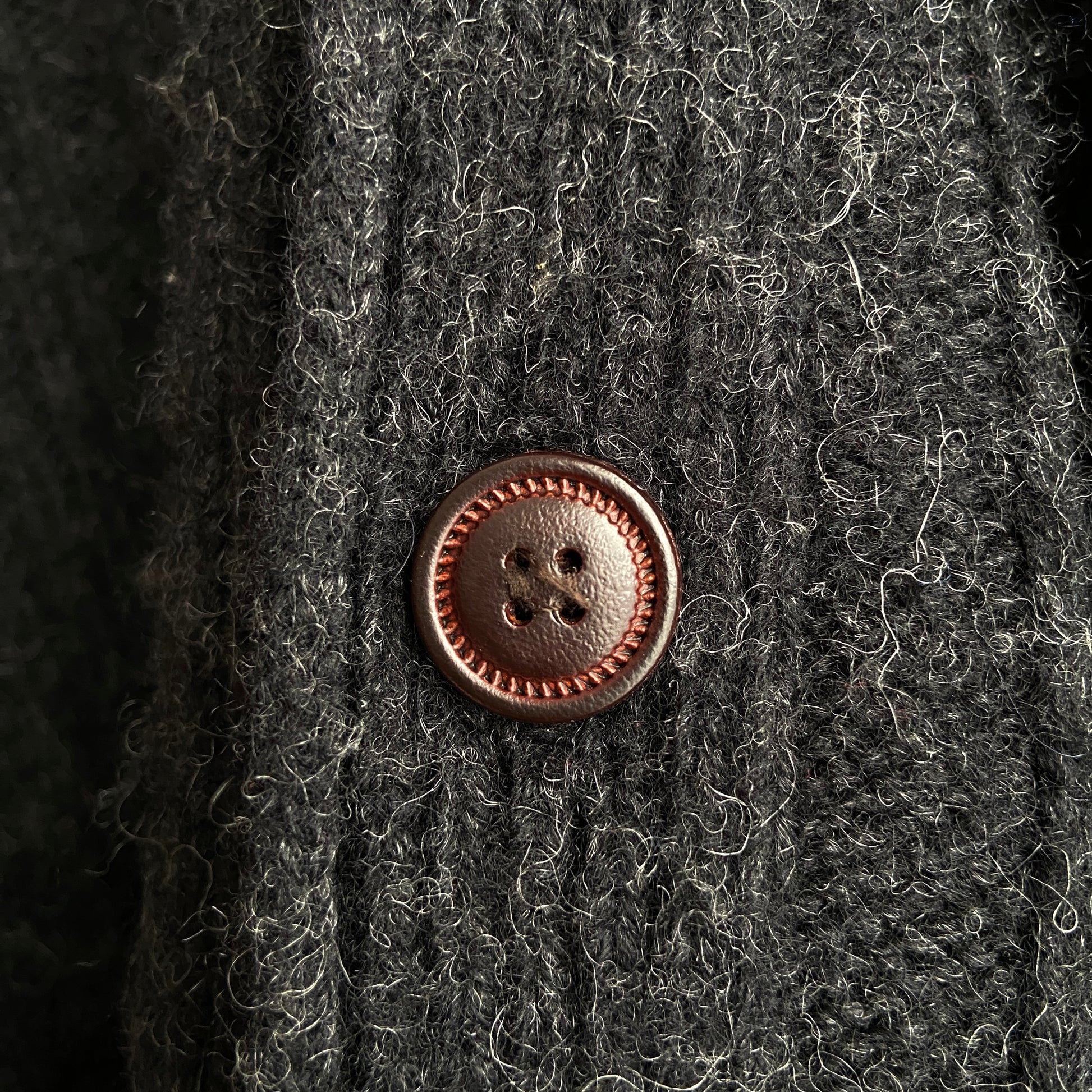 1990s J Crew Shaggy Black Wool Cardigan with Leather Buttons
