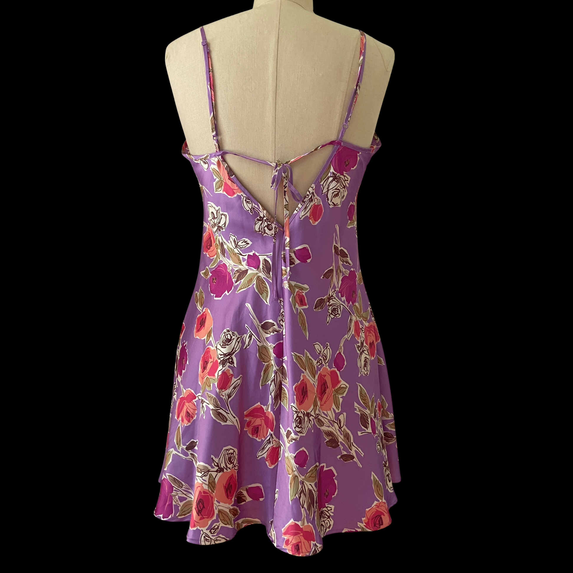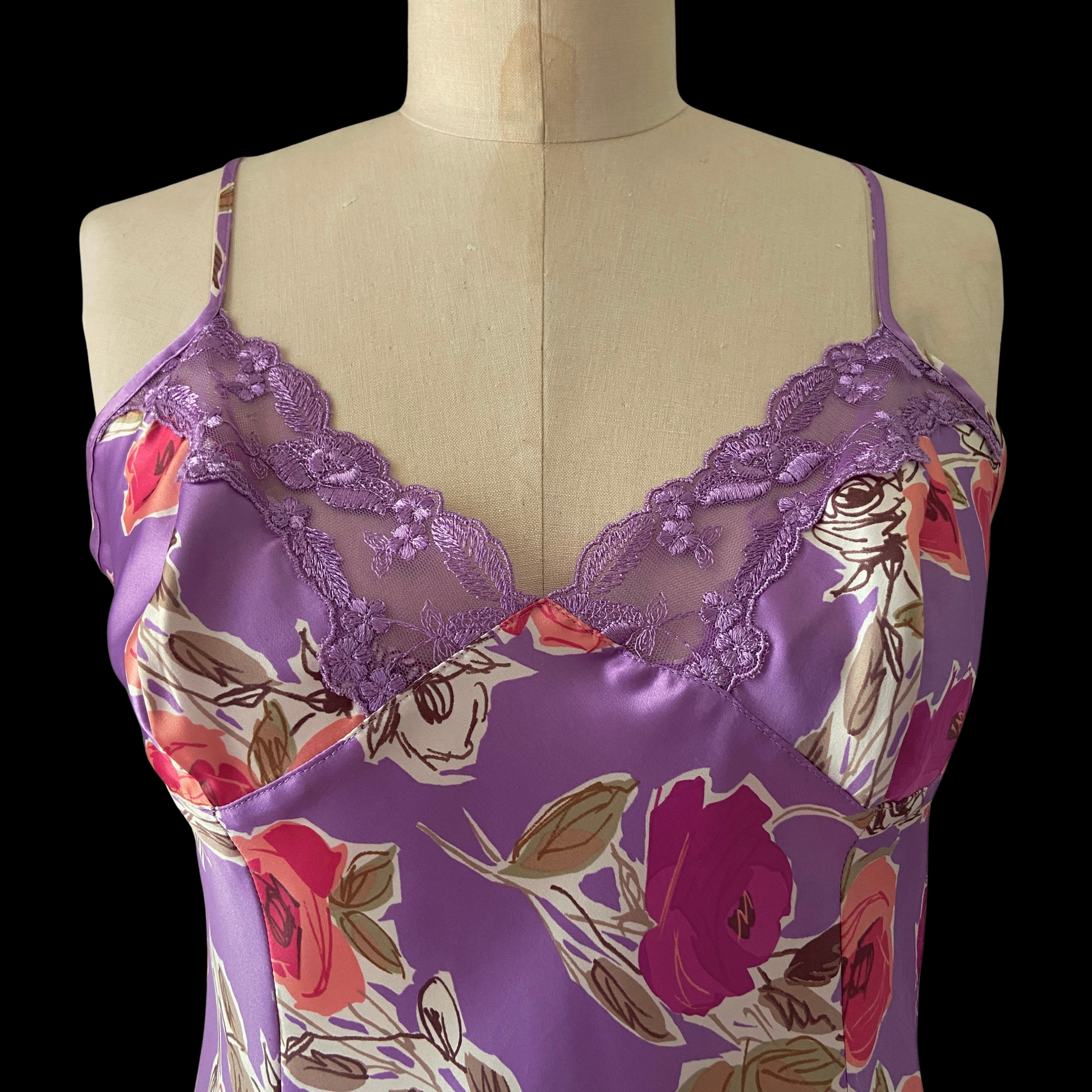 2000s Victorias Secret Purple Floral Silk Slip Dress